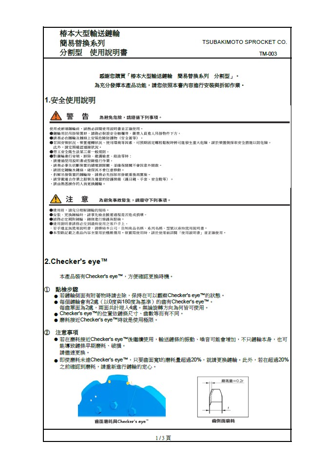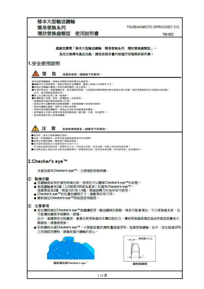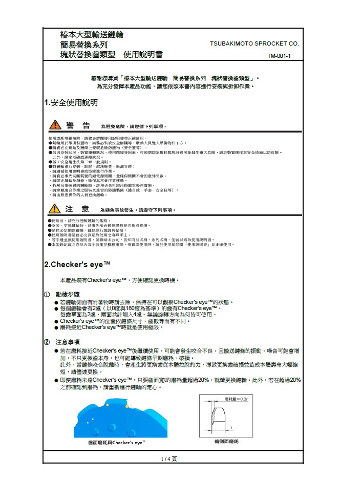 - 鏈輪的置換需要花費許多工時,有時候還需要切除軸心;若是在高處作業(yè),還會有人員墜落的風(fēng)險。