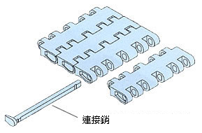 - 磁鐵型在鏈環(huán)中嵌有磁鐵,可進行金屬託盤的傾斜輸送
